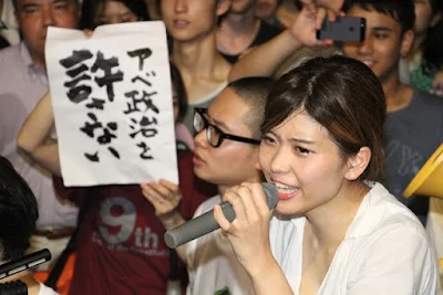 そうして、大学生や高校生などによるデモもあるそうです。実際には、自主的に集まる大学生や高校生などはほとんどいないようで、左翼系が動員しているがほとんどのようです。