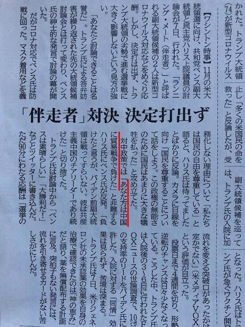さらにハリスは「中国との貿易戦争について、あの戦争は負けたんですよね?」と マイク・ペンス副大統領と質問し、これにペンス副大統領は「負けた?バイデンは戦うことすらしなかった。中国共産党を何十年も応援してきた人物だ」と語っています。国際情勢に関しては、ハリス氏は誰からの話を聞きかじって理解しているというようにしか見受けられません。