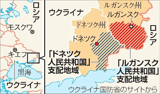 ドネツク、ルガンスク両州では14年4月、親露派武装勢力と治安部隊の間で戦闘が発生。武装勢力は14年5月、「住民投票」の結果を根拠にして独立を宣言し、実効支配を進めた。後ろ盾となったロシアは独立承認を控えてきたが、ウクライナとの対立が激化し、方針転換に踏み切った格好だ。