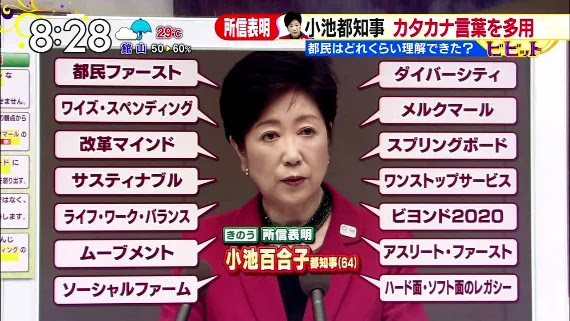 小池東京都知事の外来語多用もワードサラダの一環か? |